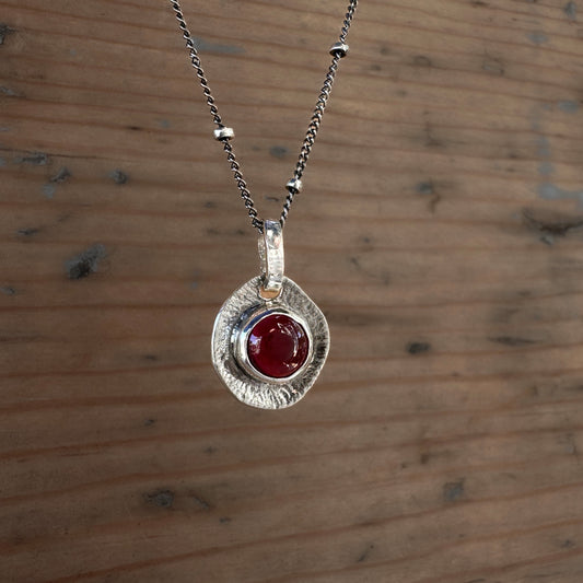 Natural Garnet & Blue Sapphire CZ Pendant Necklace in Sterling Silver