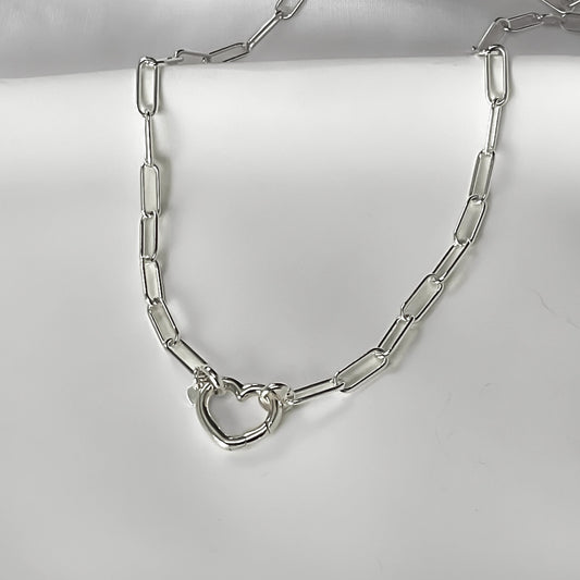 Open Heart Paperclip Chain Necklace in Sterling Silver, 4.3mm