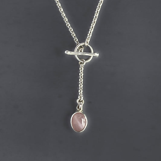 Rose Quartz Pendant Necklace in Sterling Silver, 2.4mm