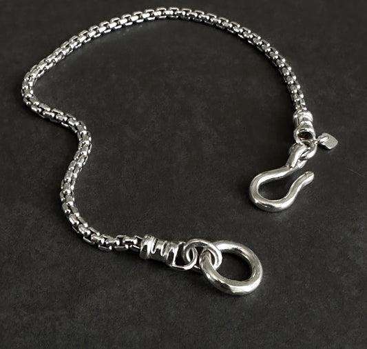 Classic Box Chain Bracelet Large Hook Clasp in Sterling Silver, 2.5mm