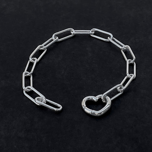 Chunky Heart Paperclip Chain Bracelet in Sterling Silver, 6mm