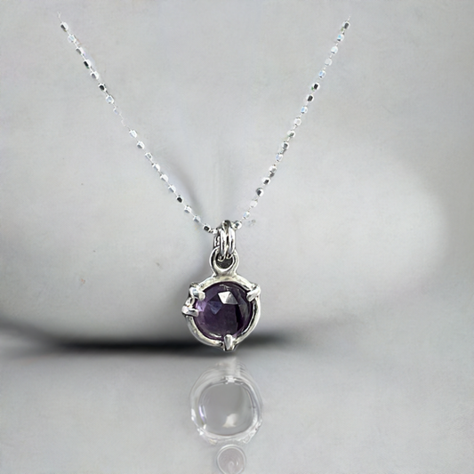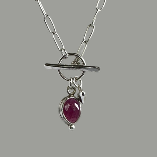 Sterling Silver Garnet Pendant Necklace, 3mm