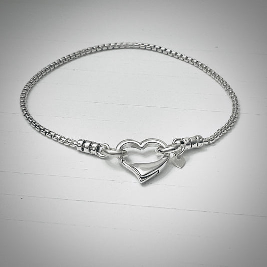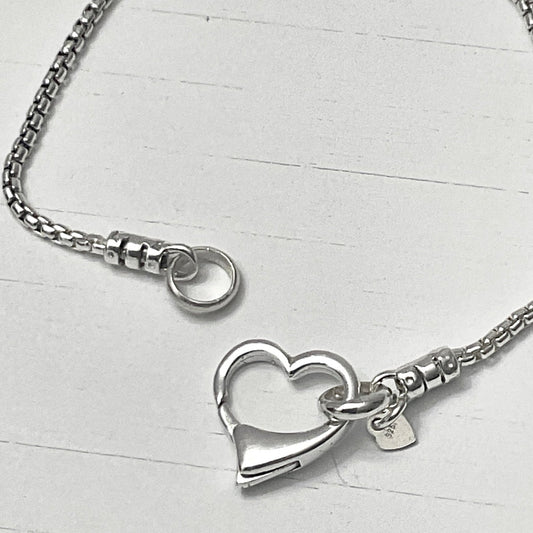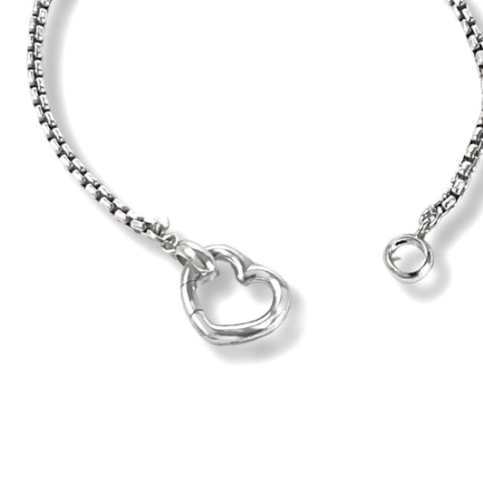 Open Heart Clasp Box Chain Bracelet in Sterling Silver, 1.8mm