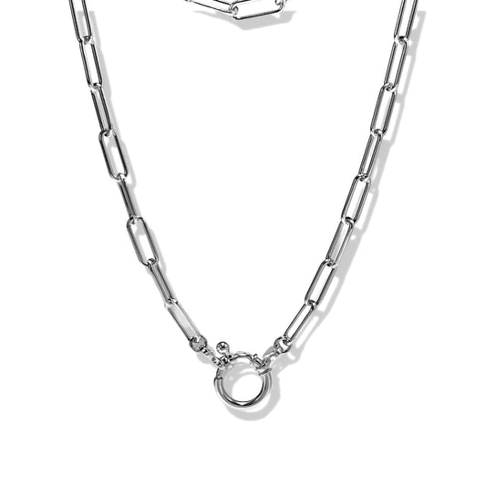 Charm Clip Paperclip Chain Necklace in Sterling Silver, 3mm
