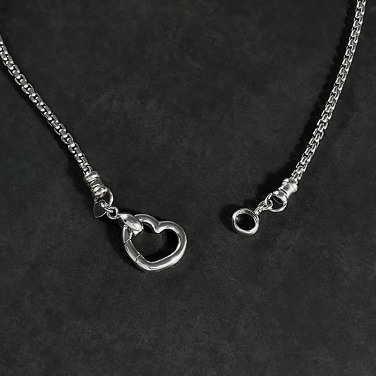 Big Heart Box Chain Necklace in Sterling Silver, 2.5mm