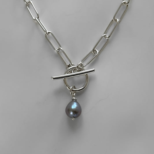 Sterling Silver Paperclip Chain Toggle Necklace, 3mm