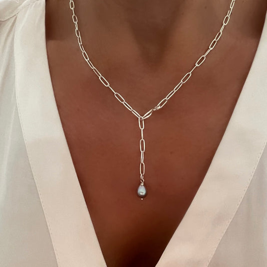 Freshwater Gray Pearl Lariat Sterling Silver Necklace
