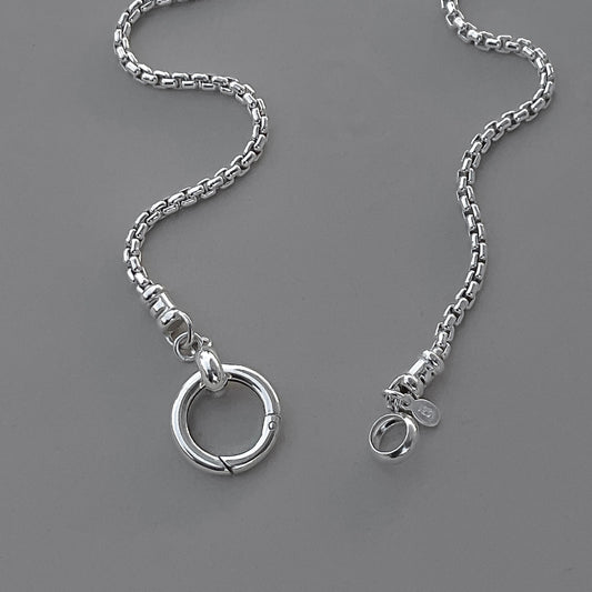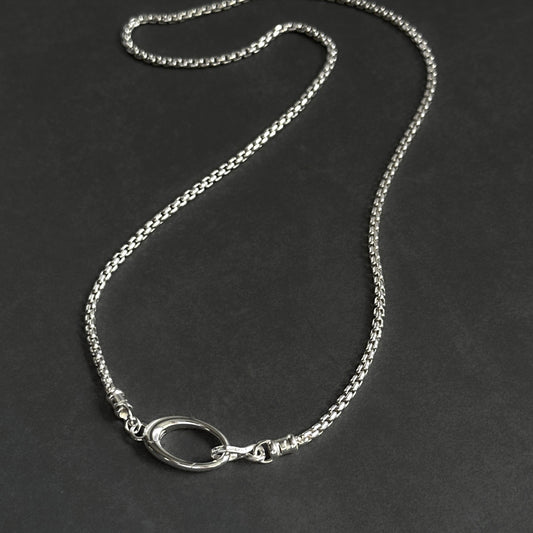 Oval Pendant Clip Round Box Chain Necklace in Sterling Silver, 2.5mm