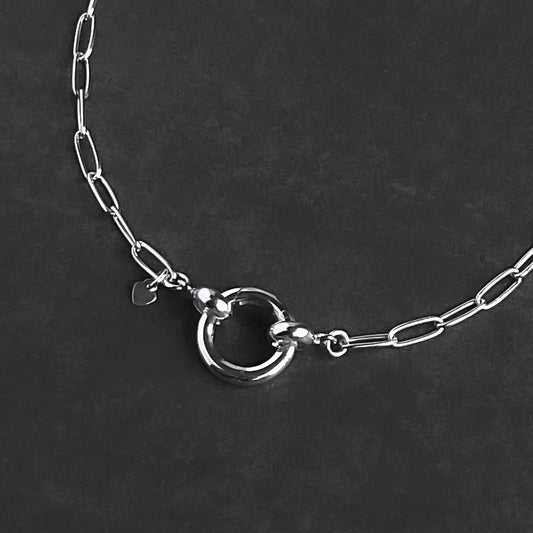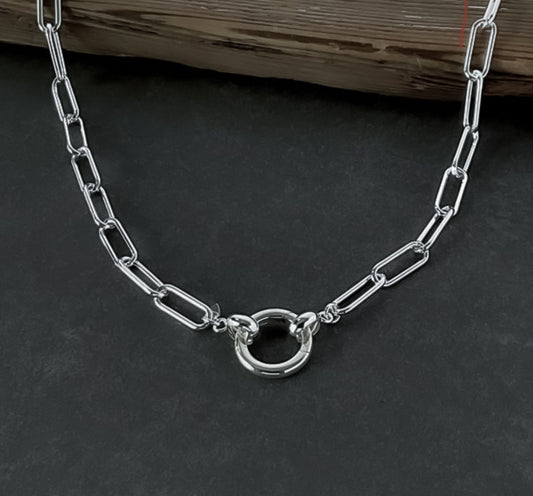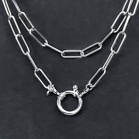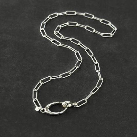 Oval Pendant Clip Sterling Silver Paperclip Chain Necklace, 4.3mm