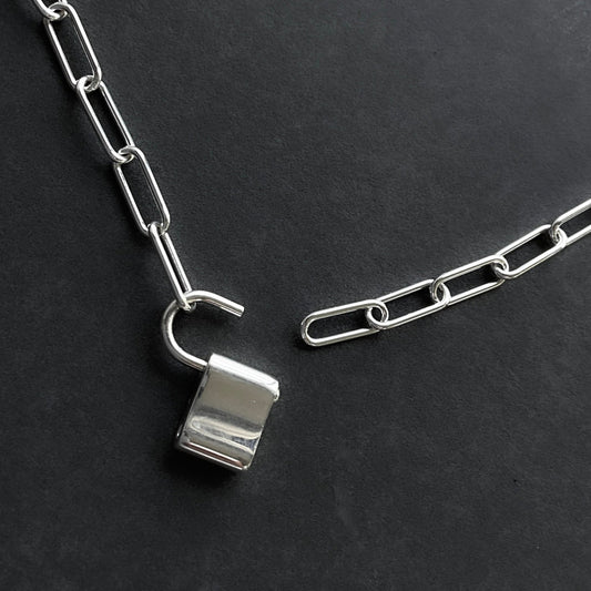 Padlock Necklace Paperclip Chain in Sterling Silver, 4.3mm