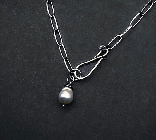 Pearl Necklace Dainty Paperclip Chain in Sterling Silver, 3mm