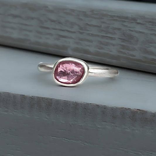 Pink Tourmaline Gemstone Sterling Silver Ring, 7.5