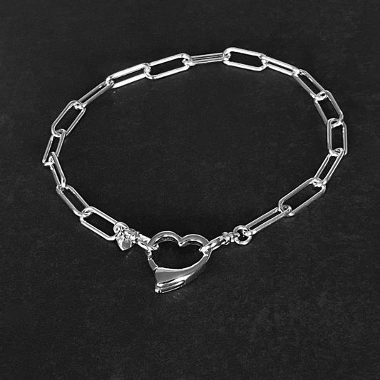 Open Heart Paperclip Chain Bracelet in Sterling Silver, 4.3mm