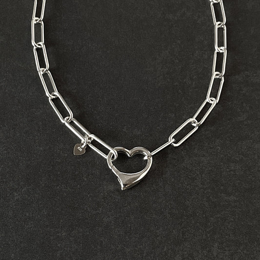 Open Heart Paperclip Chain Necklace in Sterling Silver, 4.3mm