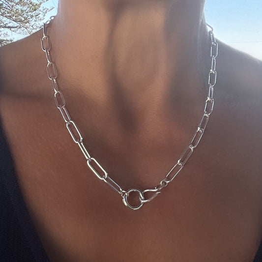Charm Clip Paperclip Chain Necklace in Sterling Silver, 4.3mm