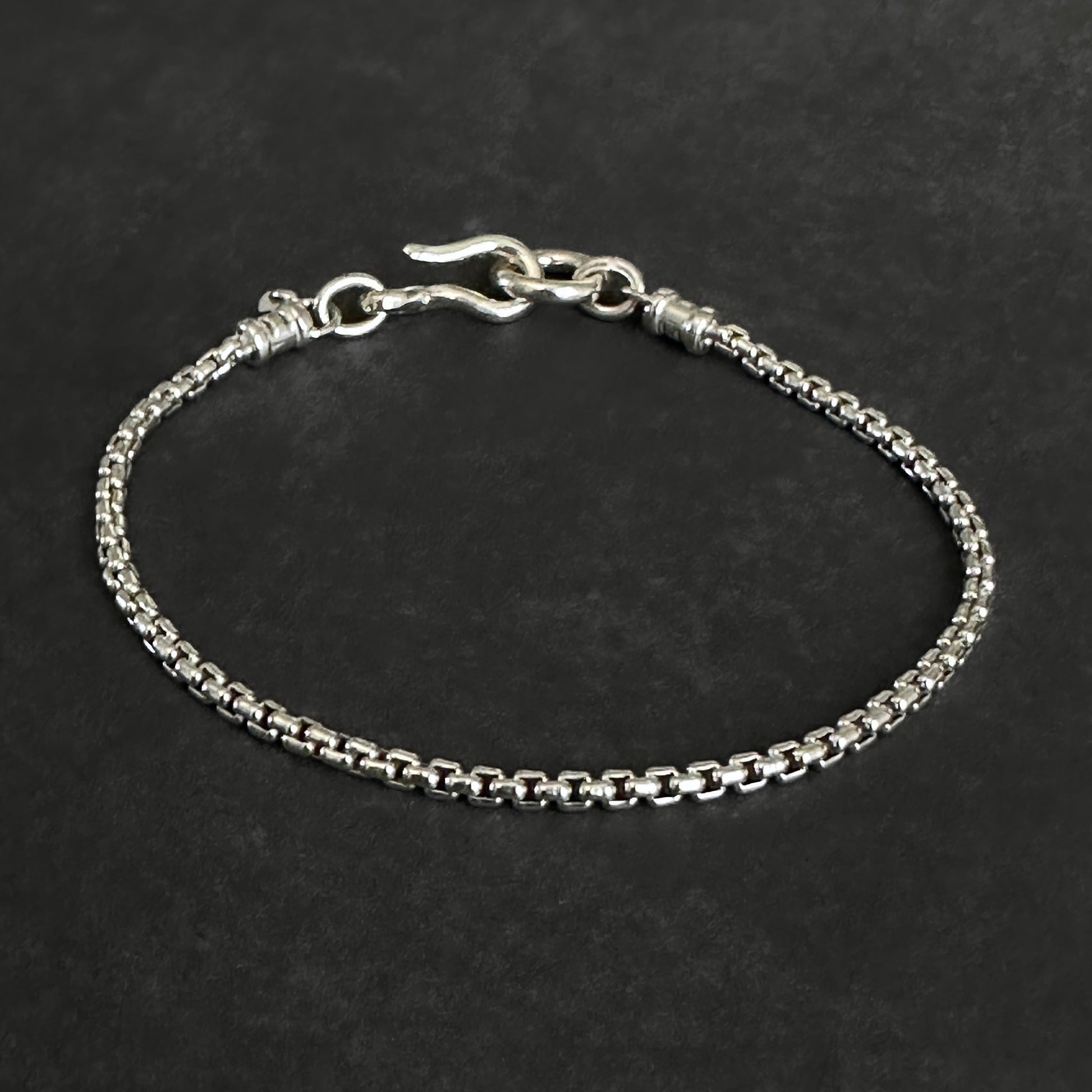 Classic Box Chain Bracelet Large Hook Clasp in Sterling Silver, 2.5mm