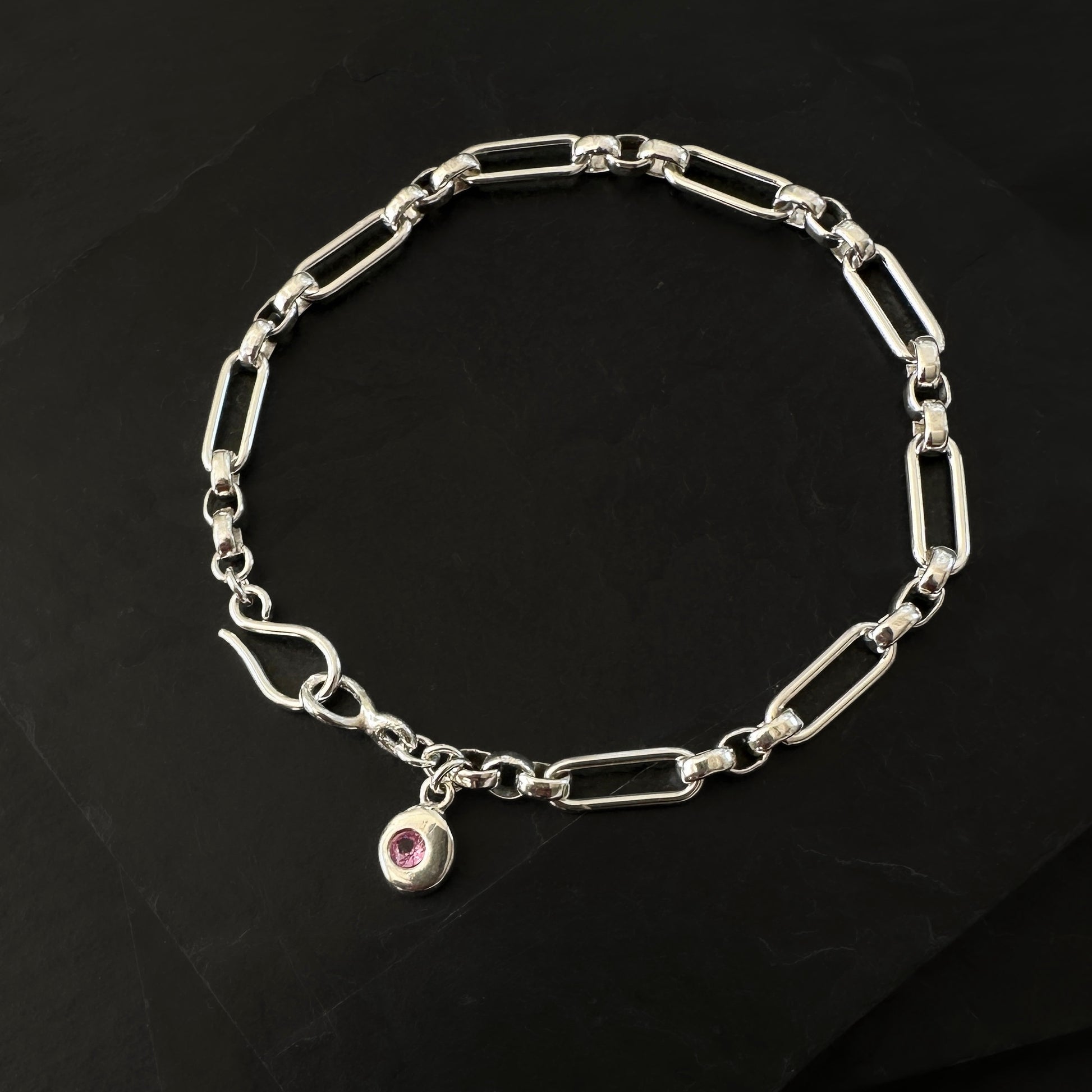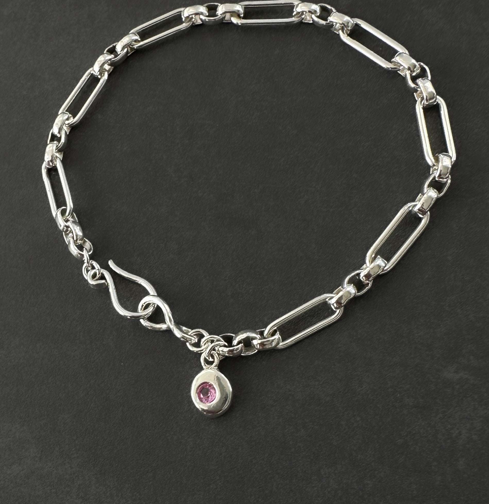October Birthstone Chain Bracelet - Sterling Silver & Pink Tourmaline