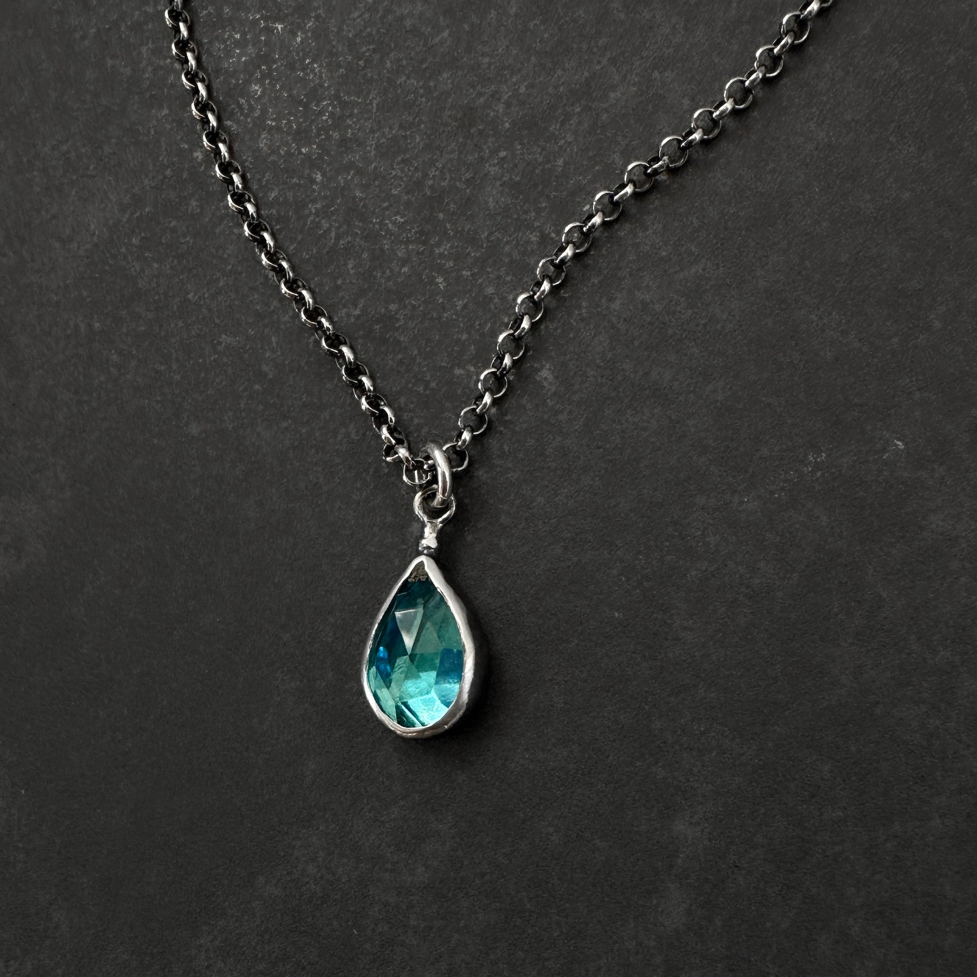 Handcrafted London Blue Topaz Pendant Necklace The patina finished rolo chain adds a touch of modern elegance to this timeless piece.