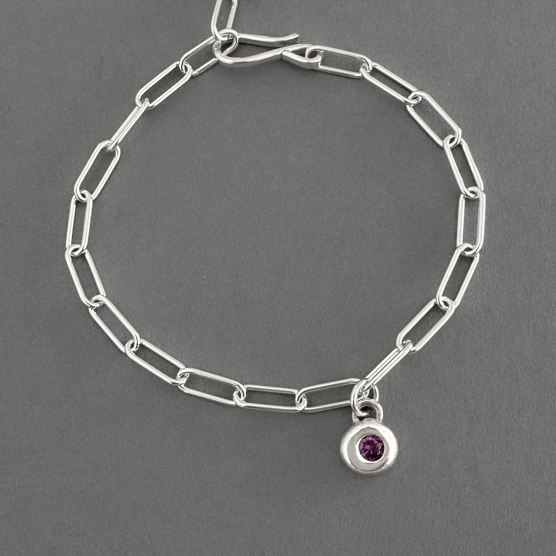 Organic shaped amethyst charm bracelet is designed for everyday wear with its minimalist style and secure hook clasp. Sleek and modern look, perfect for any occasion.