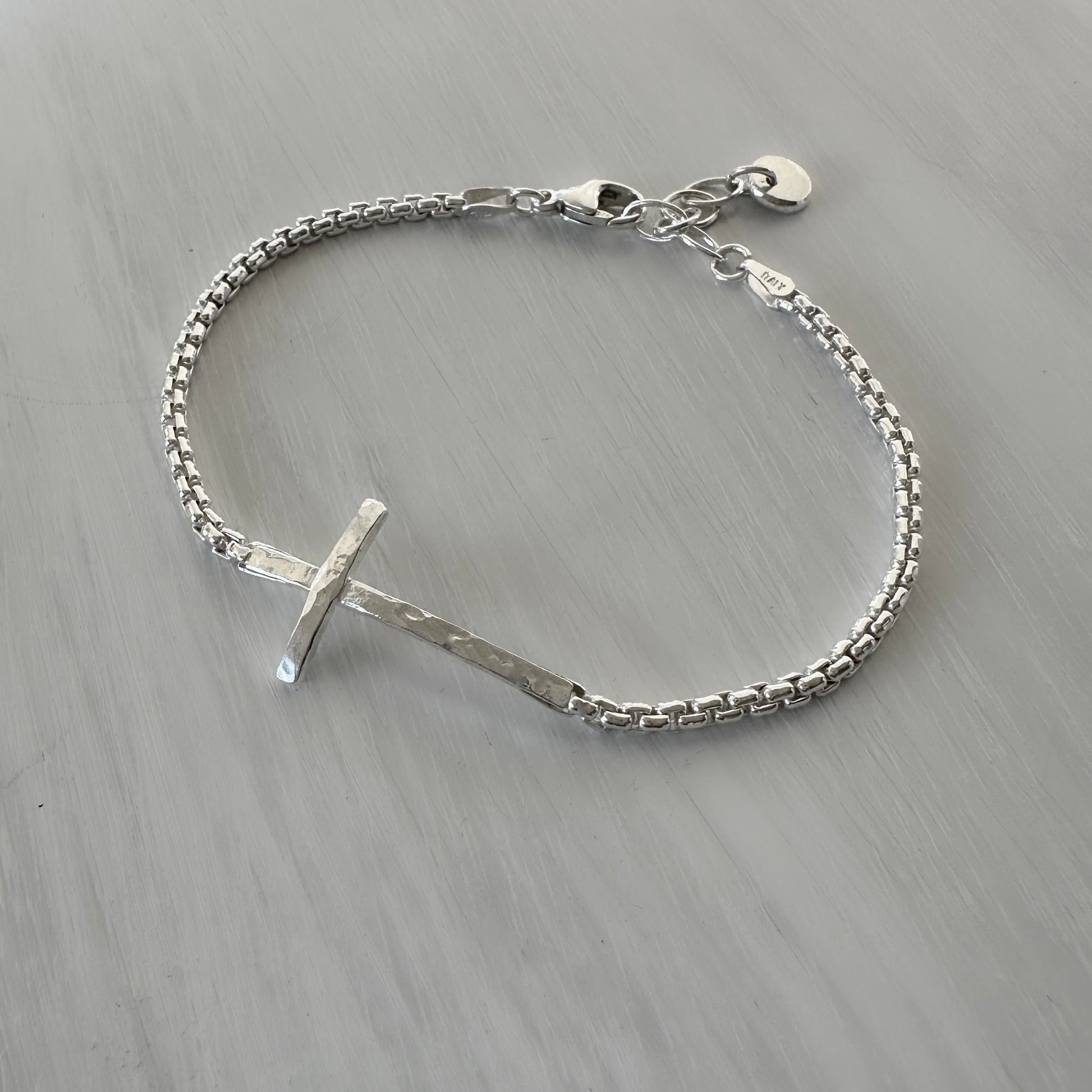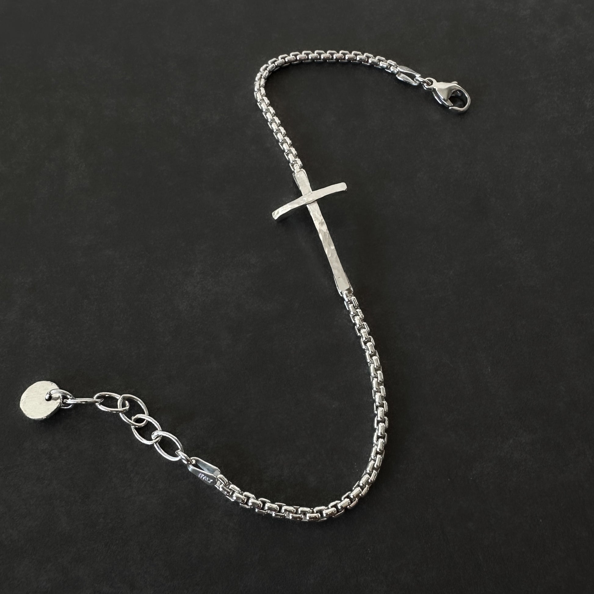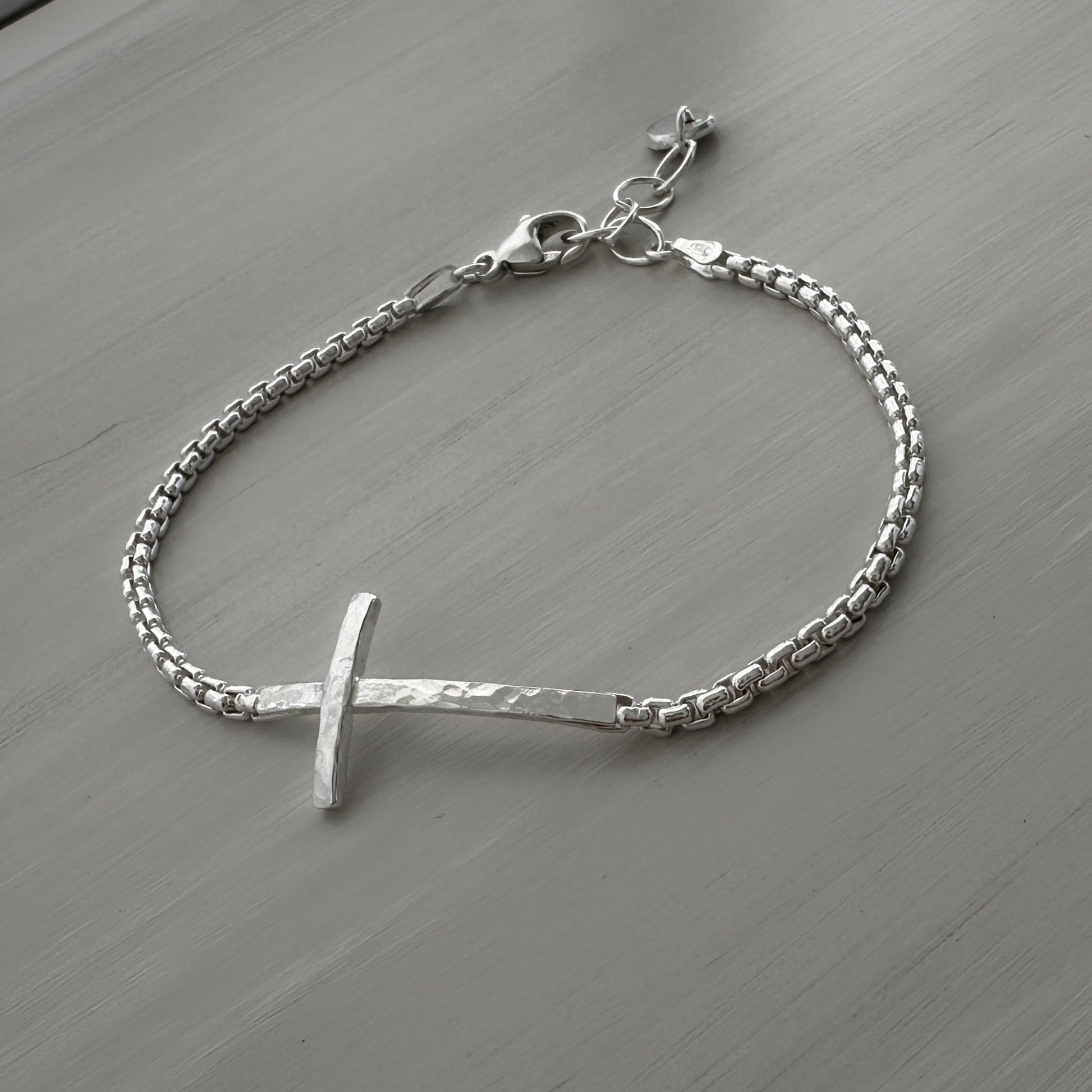 Cross Box Chain Bracelet in sterling silver. A timeless piece with a minimalist design, perfect for everyday wear.