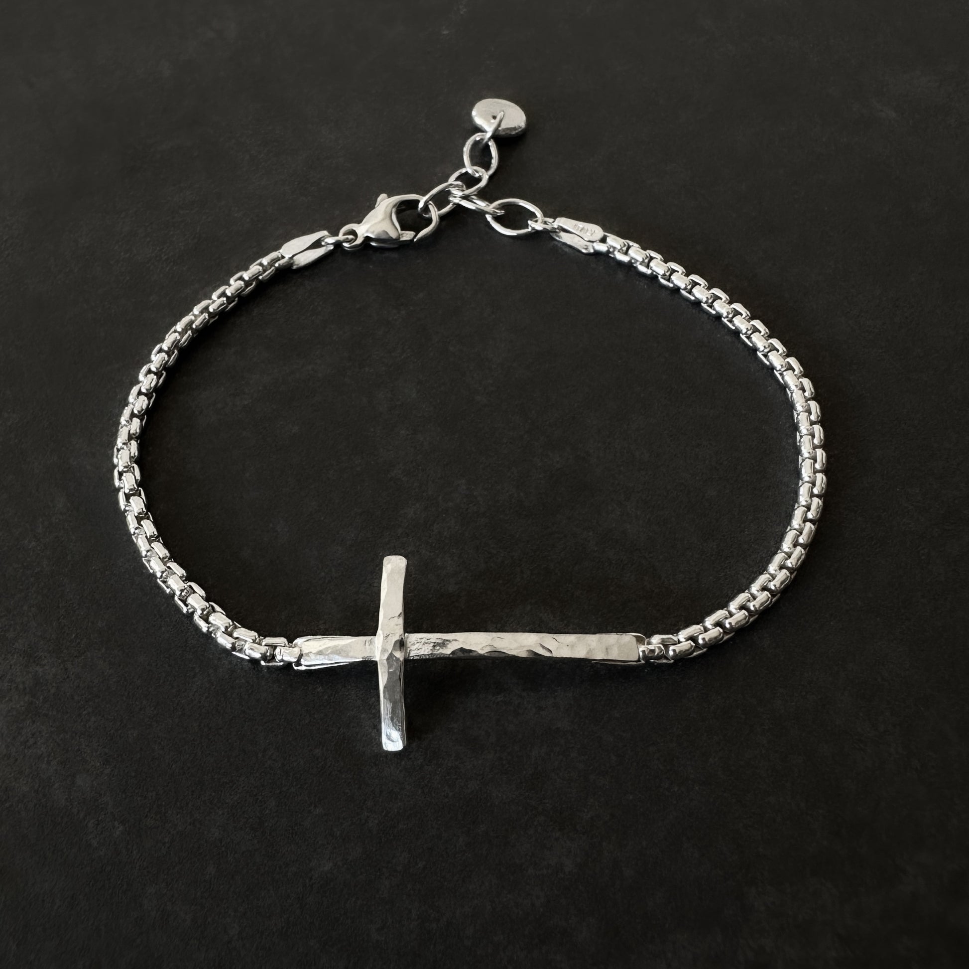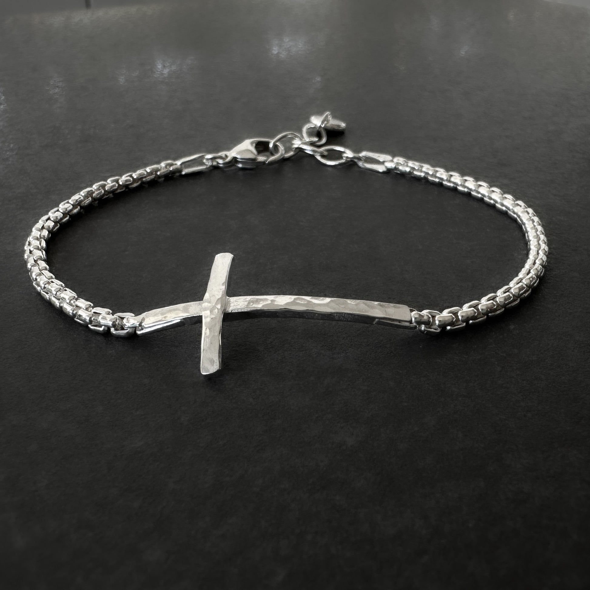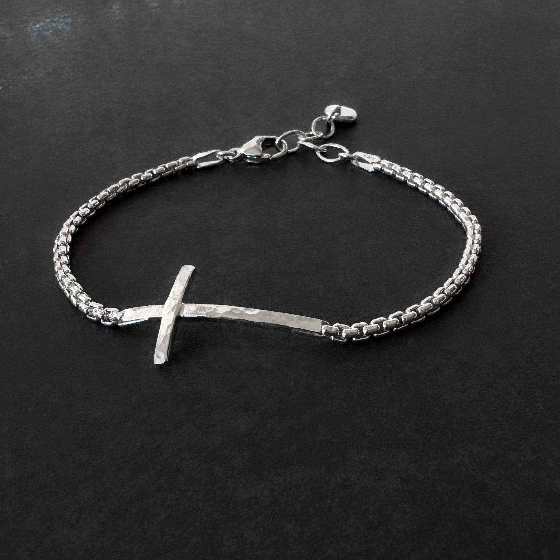 Cross Box Chain Bracelet in sterling silver. A timeless piece with a minimalist design, perfect for everyday wear.