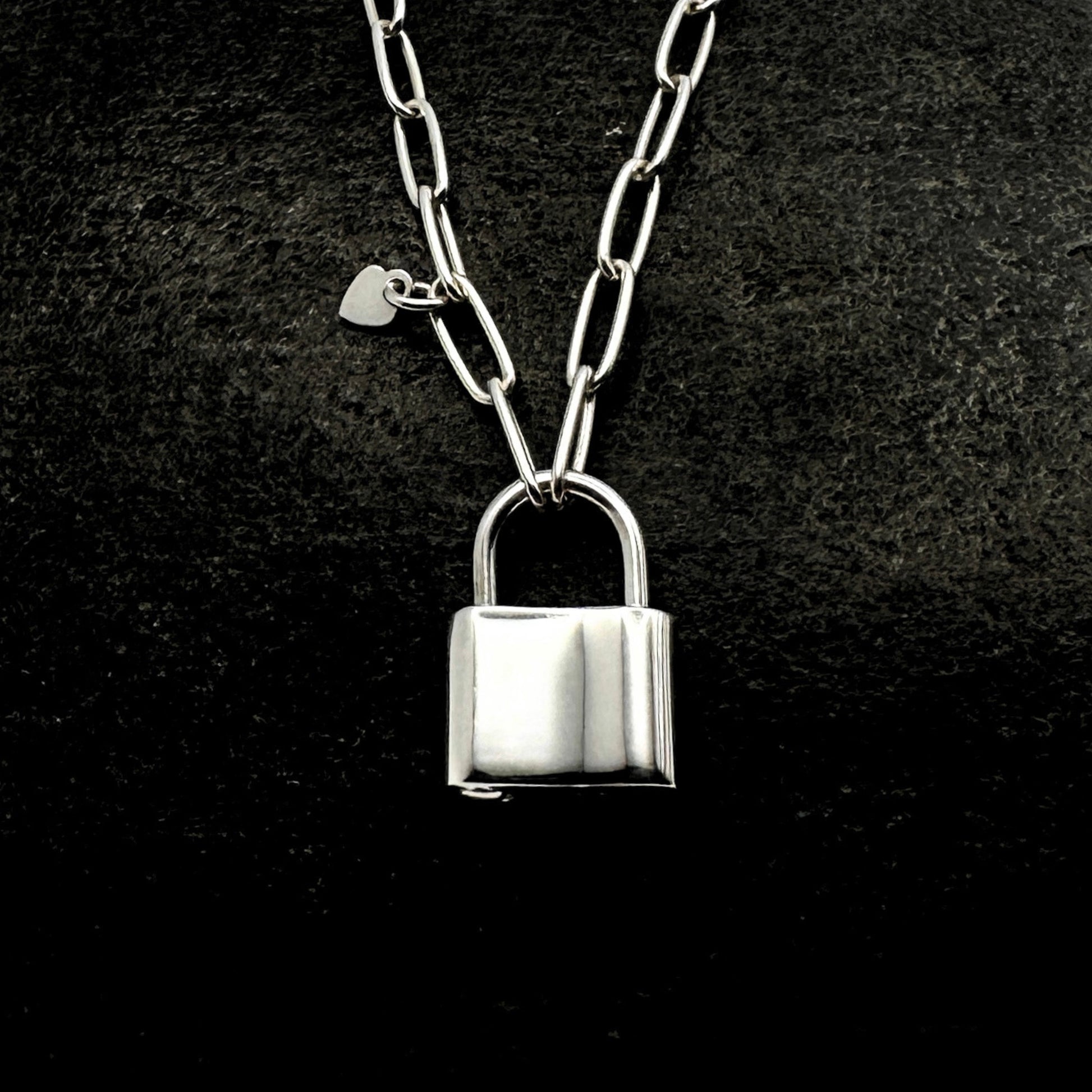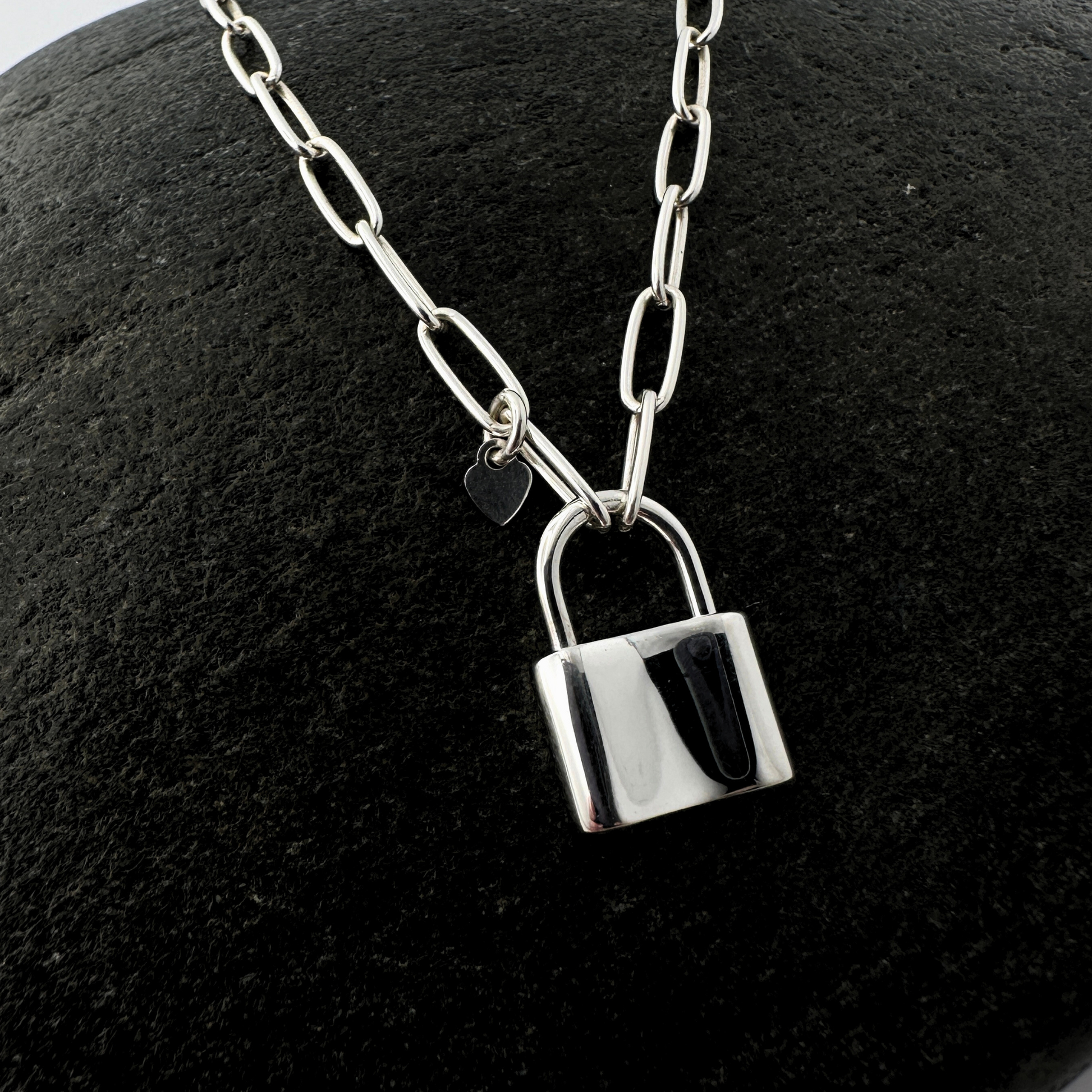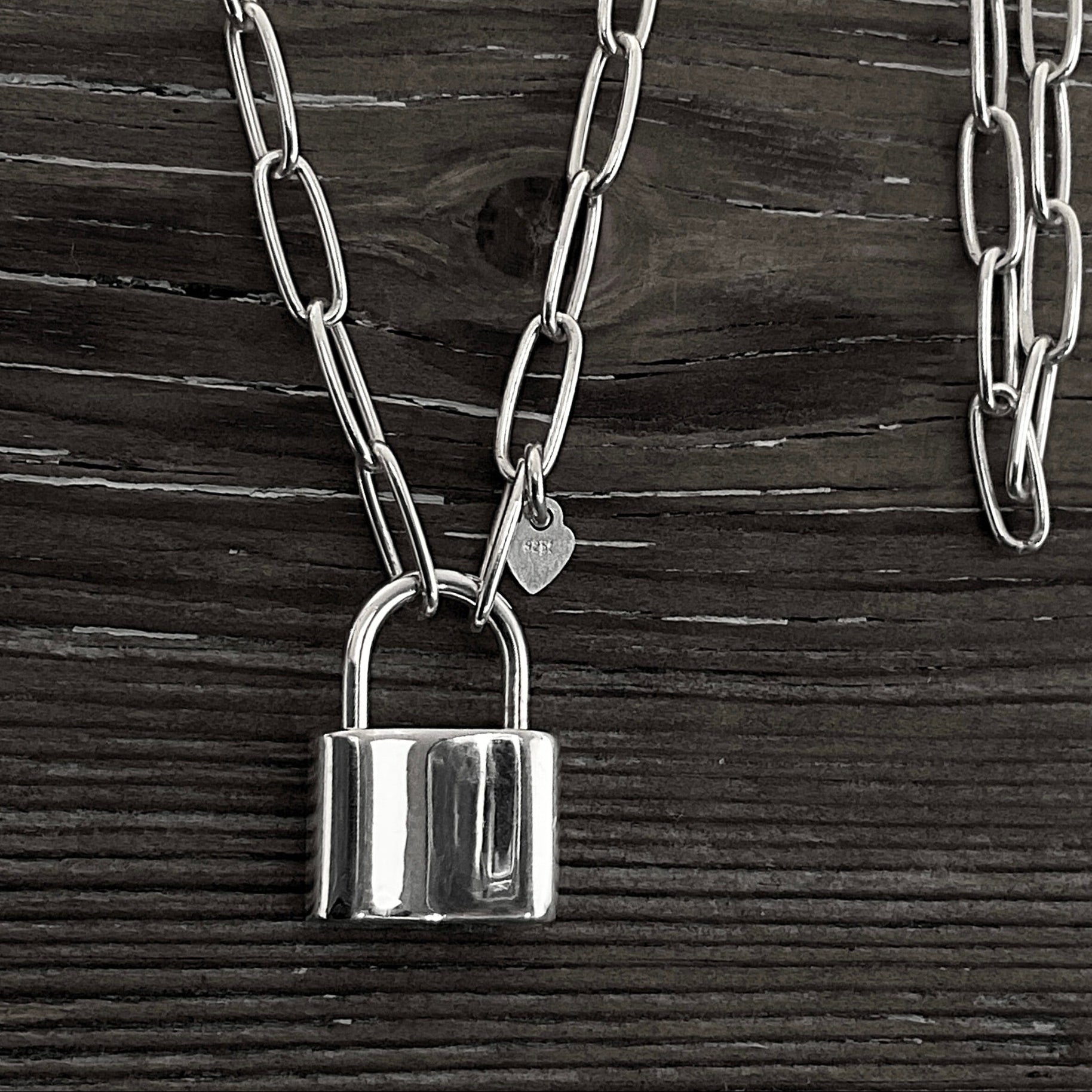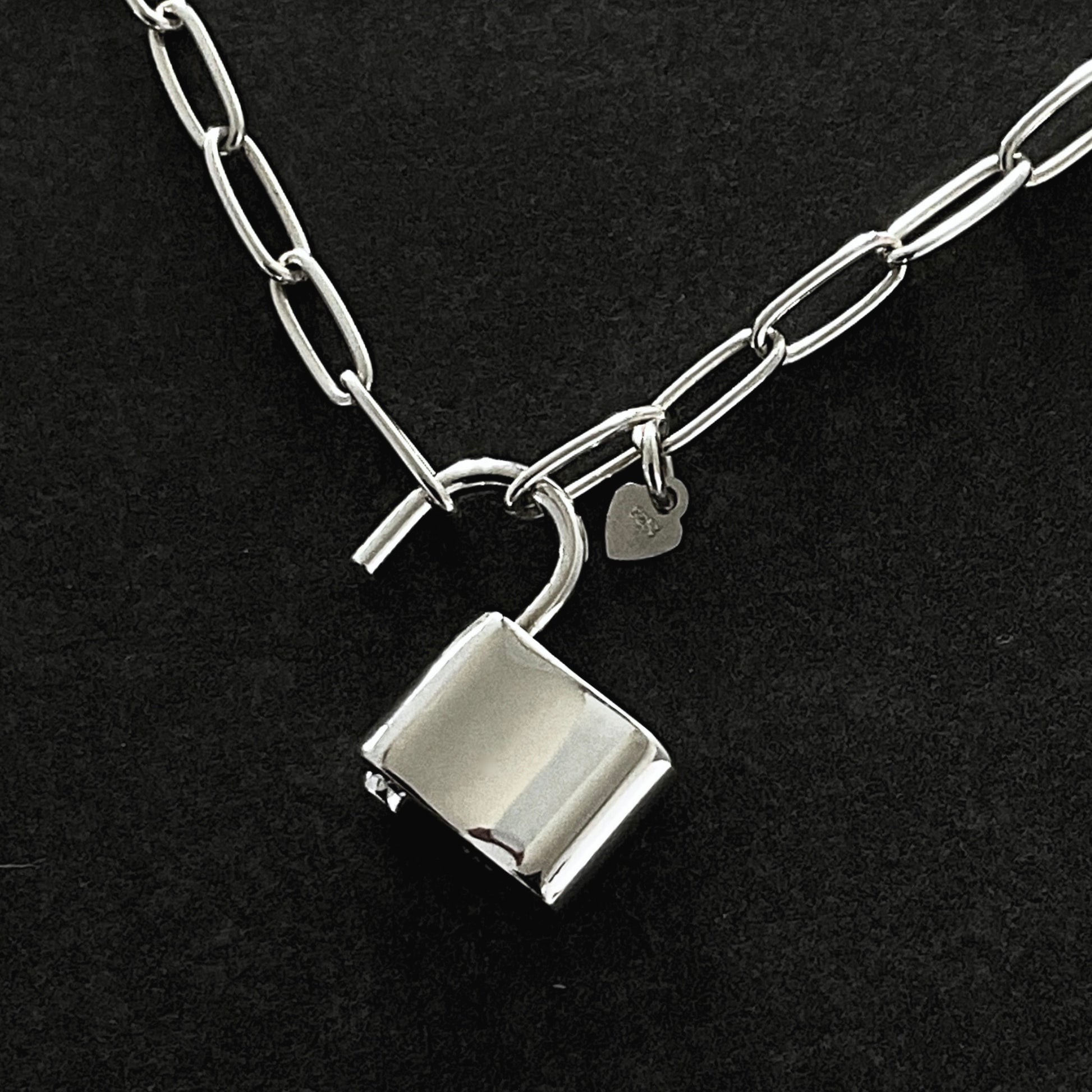 Sterling Silver Padlock Necklace Paperclip Chain, 3mm